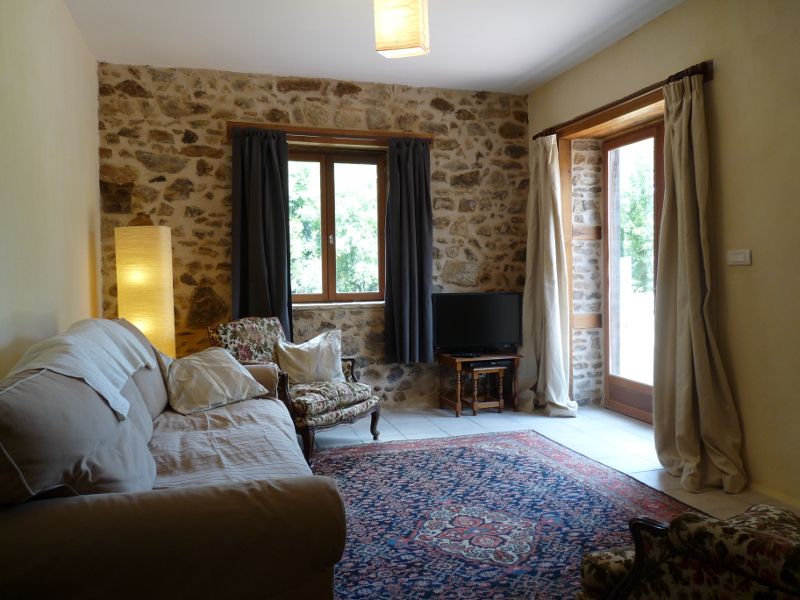 Two steps lead into the large dinning room and living room. An oak table and chairs provide the internal eating area with modern comfy sofas (including a king size bed settee) and restored furniture from the region in the relaxed living area.
